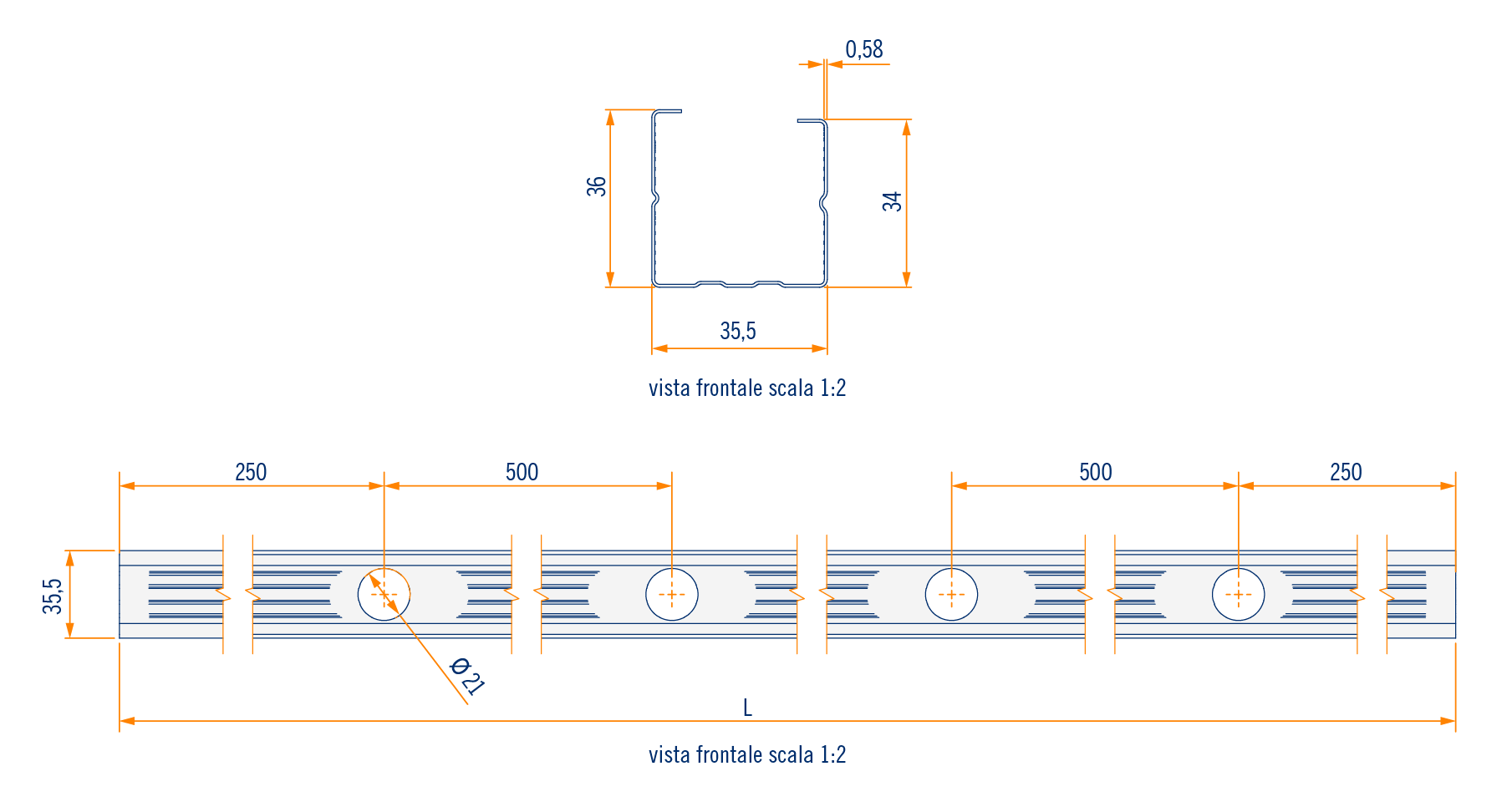 Montante a C (35 x 36 mm)