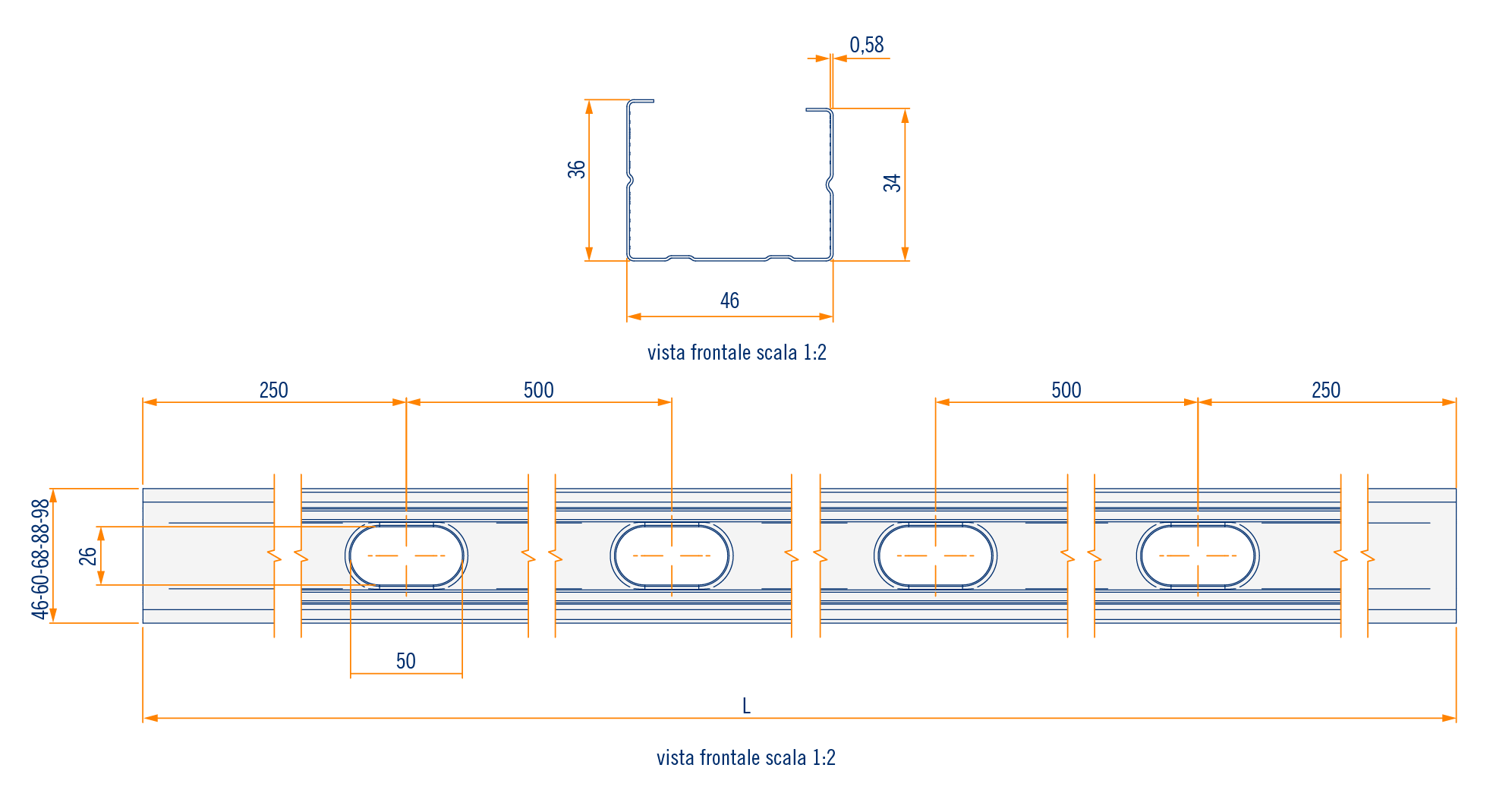 Montante a C (46 x 36 mm)