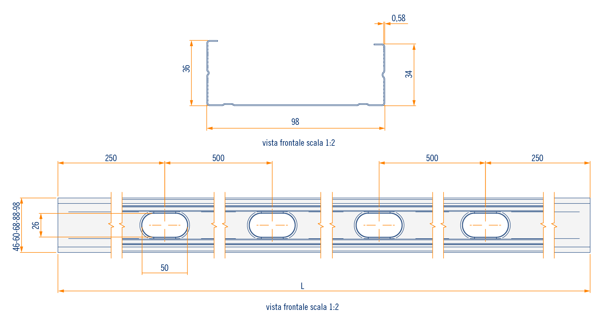 Montante a C (98 x 36 mm)