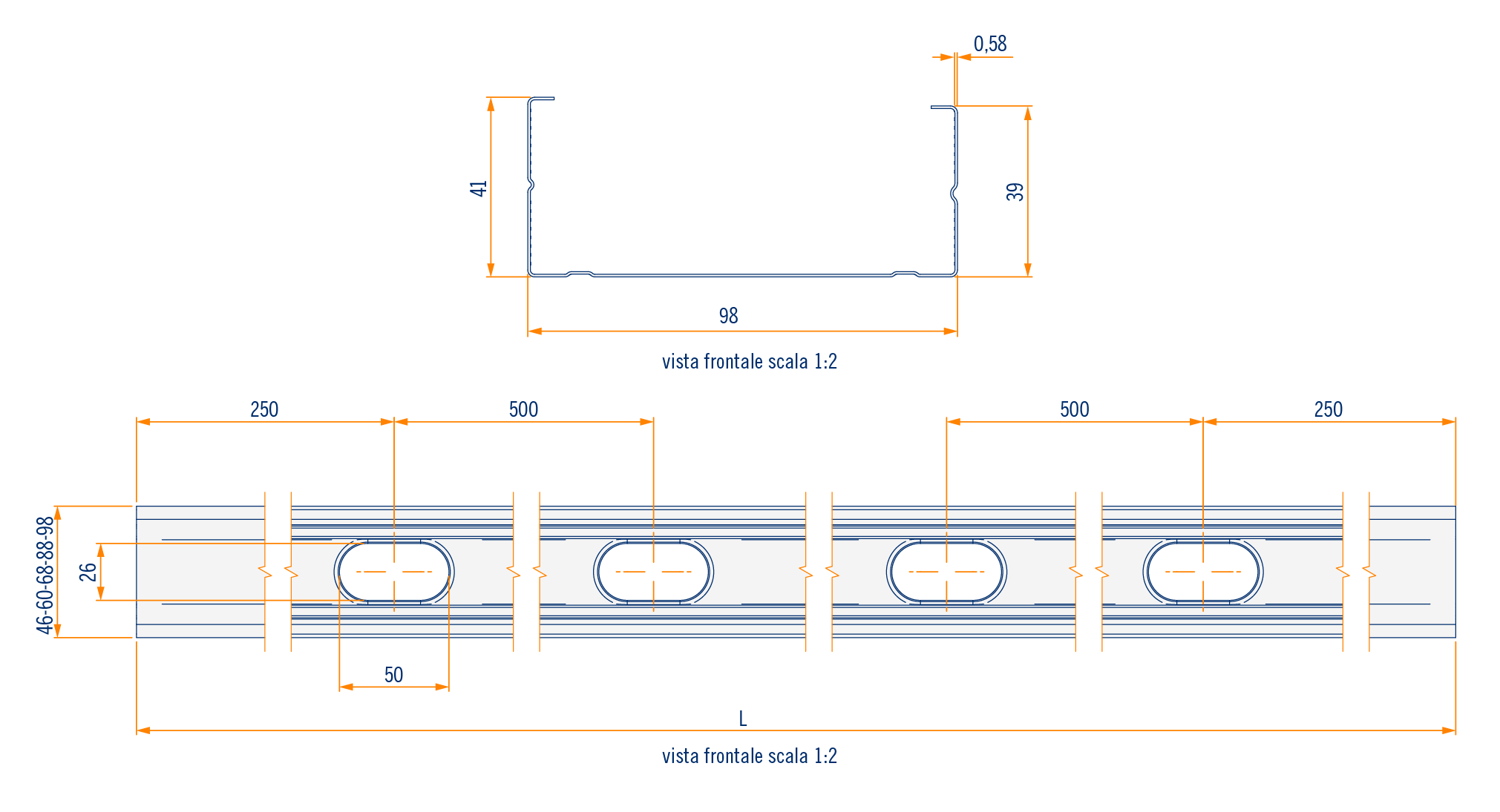 Montante a C (98 x 41 mm)